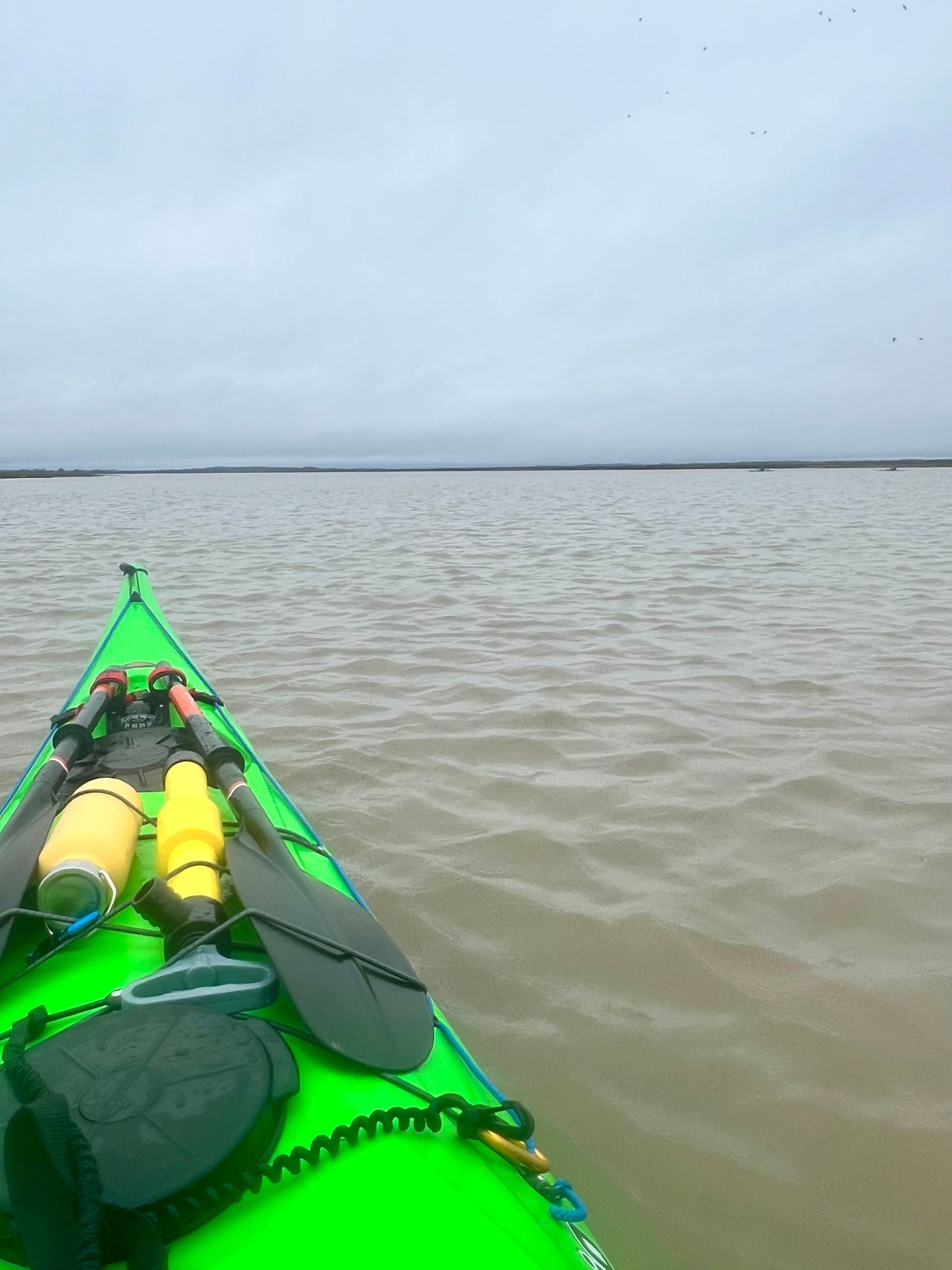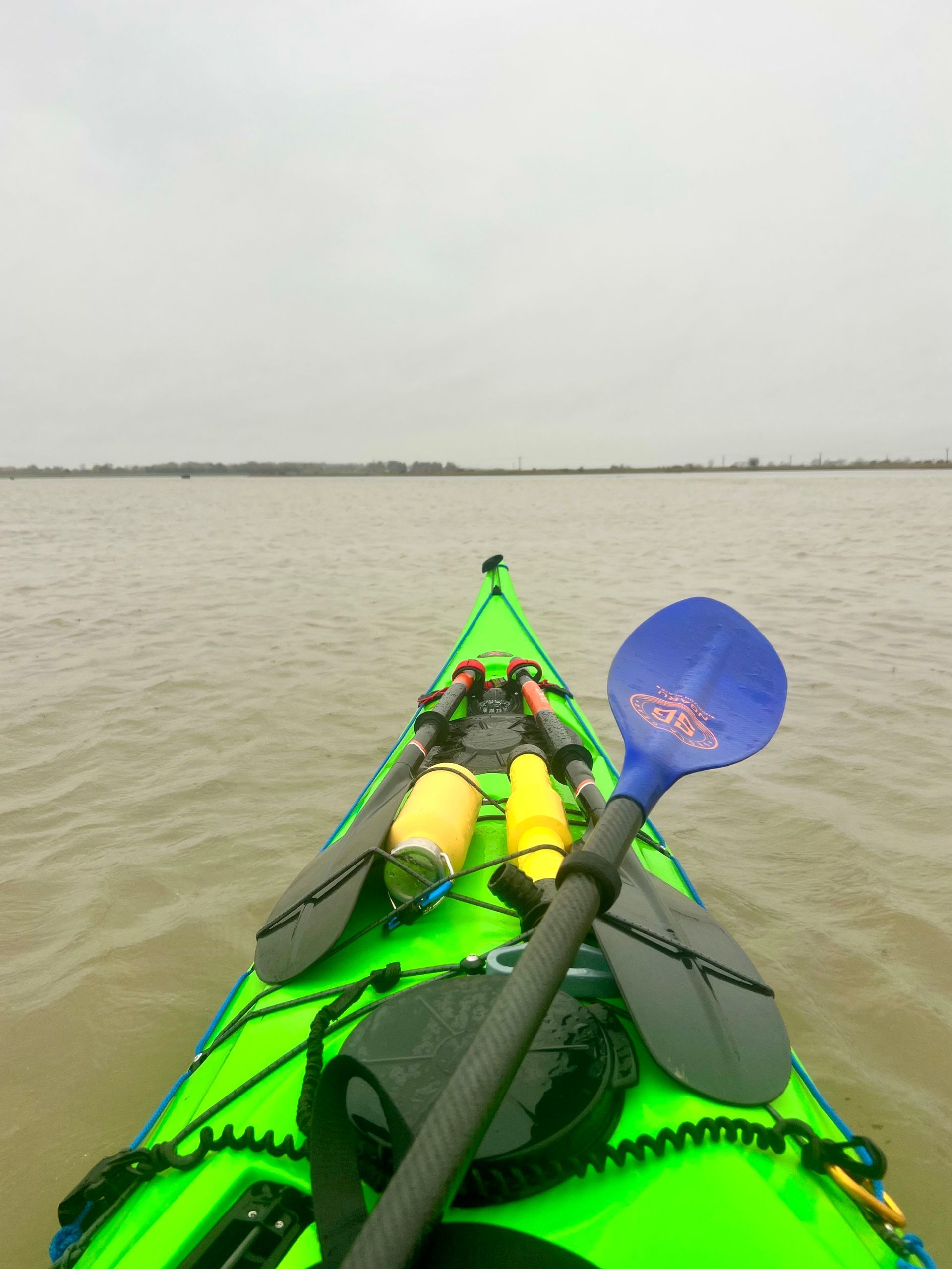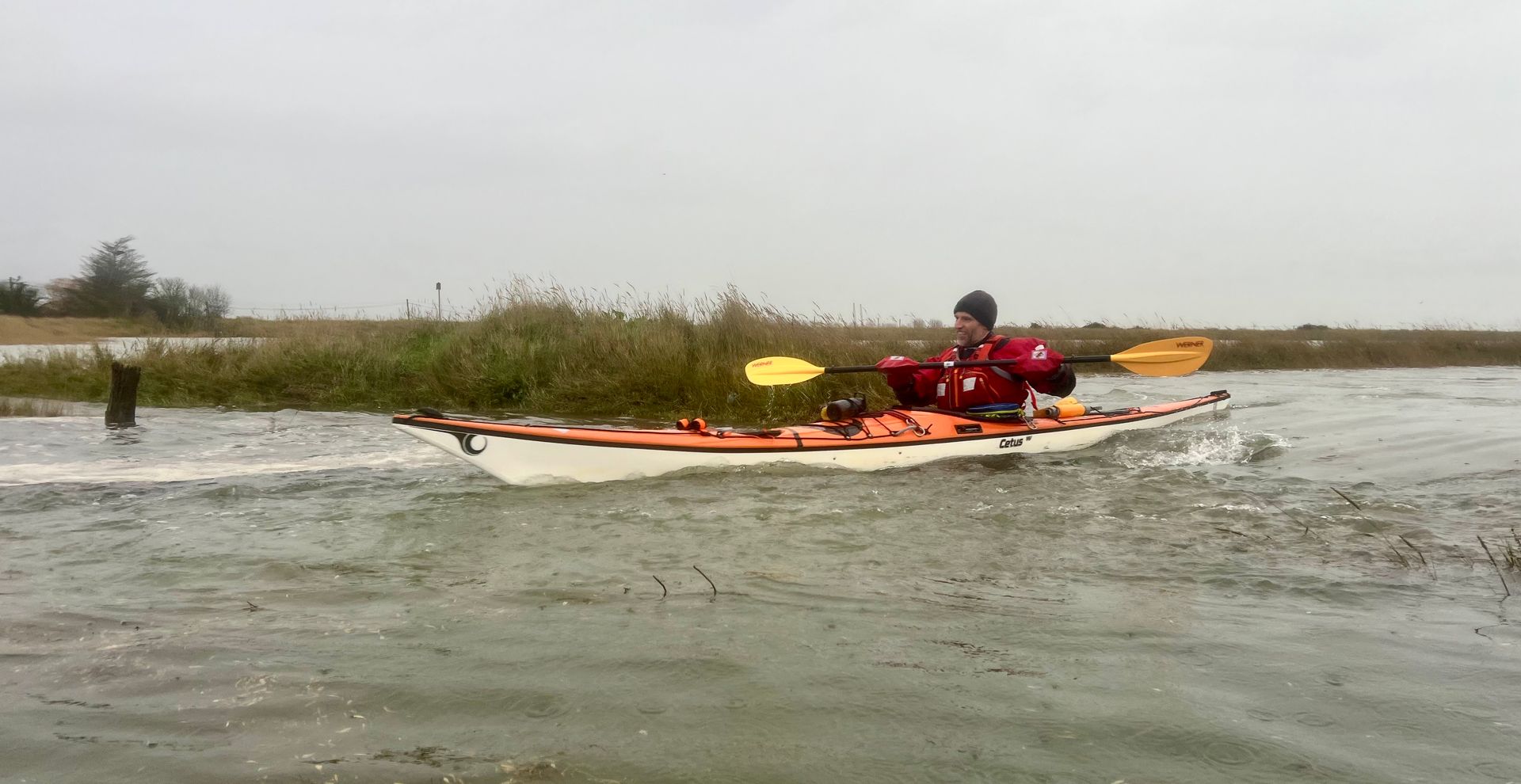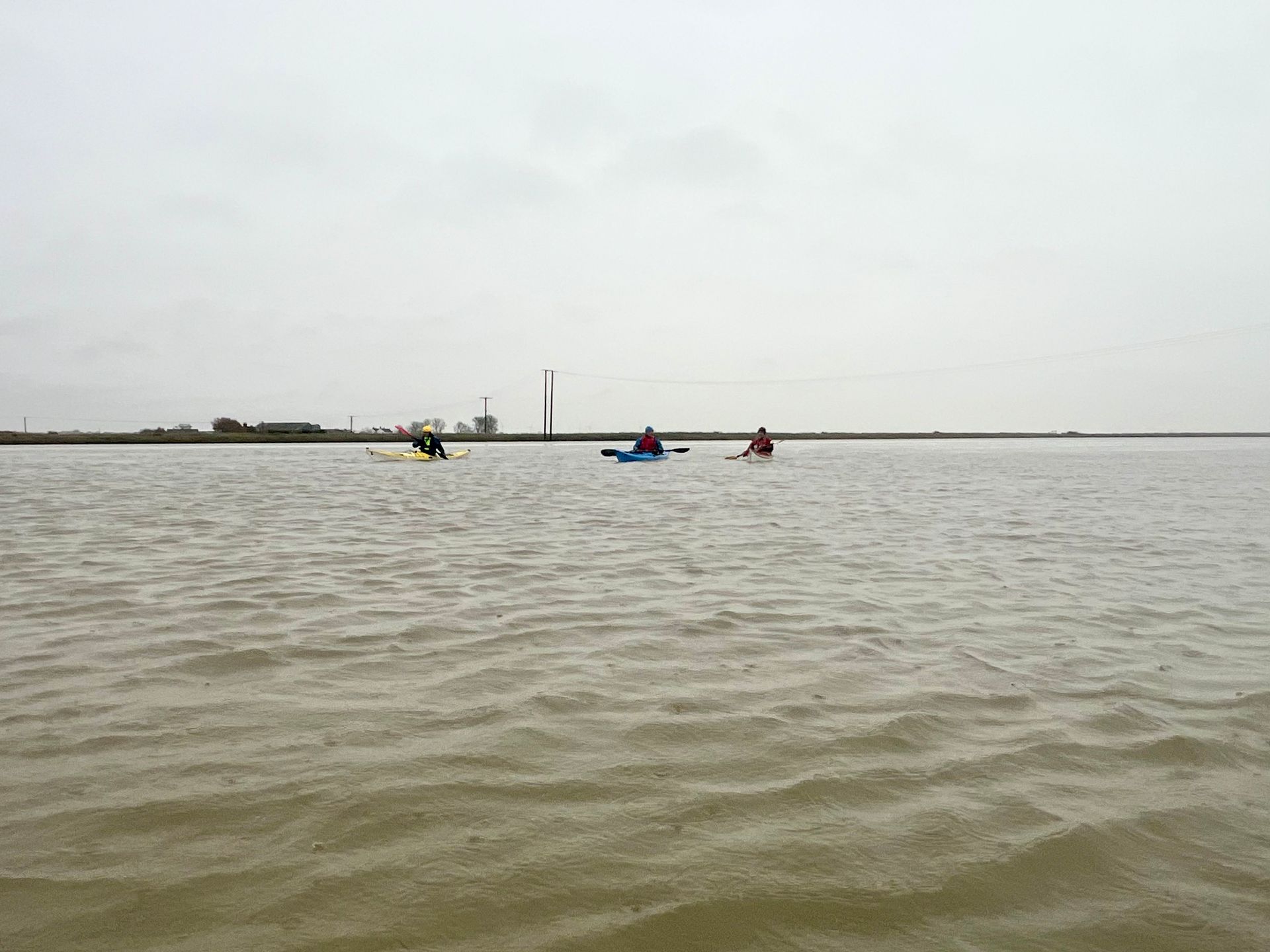 Sunday 7th December saw the 2nd biggest daytime high tide of the year, so 5 members of the club grabbed the opportunity to hopefully experience the novelty of paddling across the main road to the island! A grey morning with a stiff south easterly meant that we were into the tide and the wind on the first leg down the Crouch. Turning the corner into the Roach brought little respite despite now having the tide with us. The wind over tide made the main channel quite choppy. Those paddling closer to the edge of the river benefitted from slightly smoother water, but less tide assistance. Further on, as we turned more westwards towards Pagglesham, we were greeted by many seals slithering down the mud into the water. They then reappeared like aquatic meerkats keeping a wary eye on us. Further up the river, we pulled ashore at Pagglesham for lunch, but the wind and low temperature meant that we didn’t stay long!
