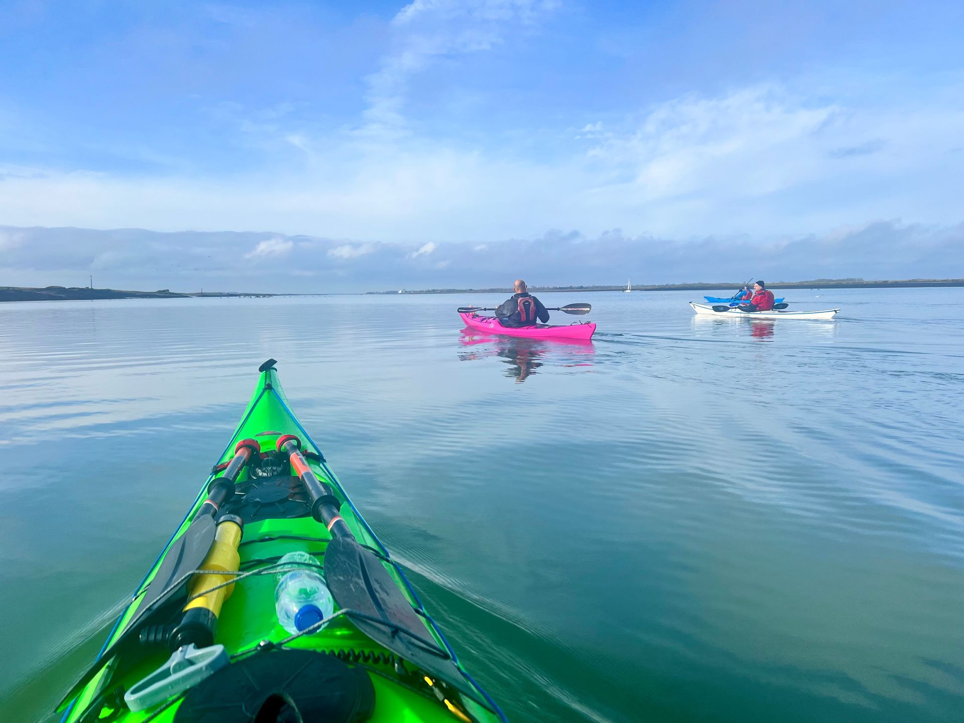 Sunday 17th August Club Paddle - Dengie Flats & Foulness Sands Taking advantage of the continued warm summer weather and ideal conditions for a slightly longer paddle, 6 paddlers from the CKC took to the water on Sunday 17th August with one aim, let’s go "Out, Out", as one famous comedian would say. The aim of this paddle was to get outside the banks of the River Crouch and the relative shelter this normally provides us with on most of our shorter paddles. This allowed the group to see some parts of the River Crouch and wider coastline they haven't necessarily seen whilst kayaking before, including the Dengie Flats, Foulness Sands, Offshore Windfarms. The additional benefit of heading directly out of the river in the direction of the Whittaker Channel is that we also get to experience the more bracing conditions heading in from the North Sea, including stronger winds and larger waves. The forecast for the paddle held firm throughout the day with a strong easterly breeze gusting up to 19kn head on, providing some bouncy conditions as we passed the entrance to the River Roach and slowly turned directly into the winds as we headed out the River Crouch. Once level with the mouth of the River Crouch, we could easily see the Dengie Flats and Foulness Sands rising on both sides of the channel. Due to the good progress we made on the first leg of our paddle, we arrived around 1 hour early of low tide and had to adjust our plans due to the Dengie Flats being mostly still under the water at this point. We then crossed over towards the Foulness Sands through some lovely chop, with waves exceeding the height we normally get to experience in the confides of the River Crouch on a regular basis. This was a good skills practice for the group and very fun in the warm and sunny weather, whilst taking advantage of the easterly breeze as most of the larger waves would be head on. After arriving on the south side of the channel we stopped for a lunch break, admiring the views across to Foulness Island, Bradwell, Clacton and the Sandbanks in the near distance. After our lunch break, we headed back to home via the South Shore of the River Crouch, staying close to the banks of the Foulness Island before cutting across to the North Shore just past Horse Shoal Buoy. Being tide and wind assisted for the entire paddle home is a real pleasure, also allowing for some surf conditions close to the shallow waters. Overall, a great 14-mile paddle completed in 4 hours, which included our half our stop on the banks of the channel for lunch. We also had the pleasure of celebrating Sophie’s Birthday and hope she enjoyed marking it with such a nice paddle out on the river. Cheers Dan Photos Supplied: Dan / Dee / Sophie