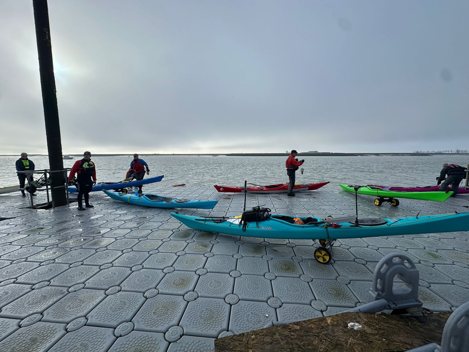 BIG tide circumnavigation of Wallasea Island Sunday 7th December saw the 2nd biggest daytime high tide of the year, so 5 members of the club grabbed the opportunity to hopefully experience the novelty of paddling across the main road to the island! A grey morning with a stiff south easterly meant that we were into the tide and the wind on the first leg down the Crouch. Turning the corner into the Roach brought little respite despite now having the tide with us. The wind over tide made the main channel quite choppy. Those paddling closer to the edge of the river benefitted from slightly smoother water, but less tide assistance. Further on, as we turned more westwards towards Pagglesham, we were greeted by many seals slithering down the mud into the water. They then reappeared like aquatic meerkats keeping a wary eye on us. Further up the river, we pulled ashore at Pagglesham for lunch, but the wind and low temperature meant that we didn’t stay long! Next back to Pagglesham creek to paddle towards the road to Wallasea. The wind and tide were now behind us, pushing us along nicely. The height of the tide allowed us to take a shortcut across the saltings to the road. To our surprise, the water in Pagglesham Creek was around 100mm higher than in Lion’s Creek, creating a narrow stream of fast moving water across the road. Great fun was had, breaking out into the eddies on the road, then practising our kayak control and acceleration to paddle back up from the road into the higher water of Pagglesham Creek. After 20 minutes or so of playing here watched by car drivers stranded by the flood, we headed off down Lion’s Creek towards the Crouch. Next mission was to cross to Creeksea, to try to paddle along the road there too! Bizarrely, the tide was pushing up gently upstream on the first half of the crossing. The north side of the river was already ebbing fast! We were disappointed on arrival at Creeksea! Not only could we paddle a long way up the lane alongside the dinghy park there, but we were able to do the second circumnavigation of the day, this time round the Creeksea Sailing Club race hut! A gentle paddle with the tide, took us back to BSC; 5 very happy paddlers. The tide on this day was 5.48m The next one this high will be on Boxing Day 2026, and the day after, so one for the diary? Cheers Roger Photos Supplied: Dan